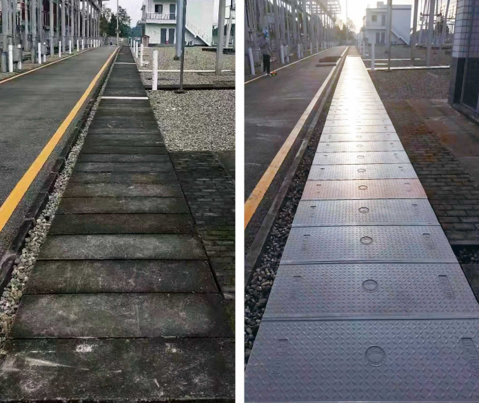 Comparison of Efects Between Concrete Cable Trench Cover and New Composite Trench Cover Before and after installation.